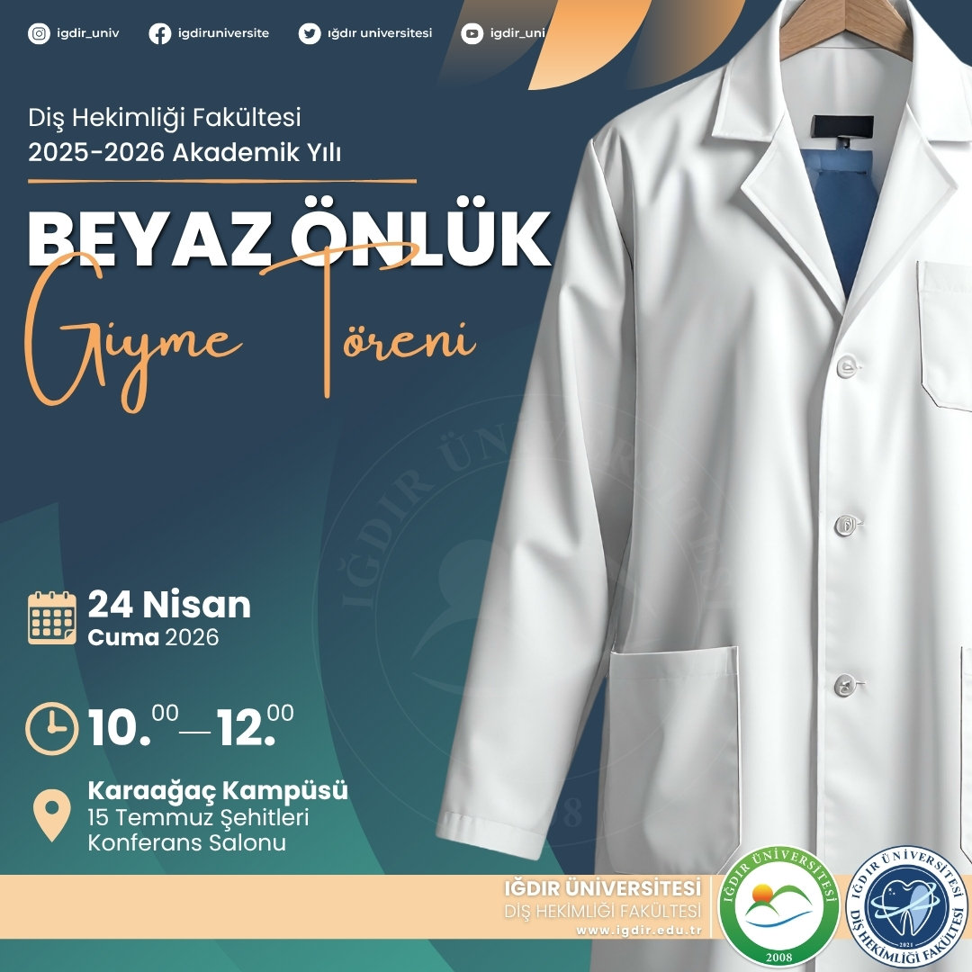 Üniversitemizde Diş Hekimliği Fakültesi, 2025-2026 Akademik Yılı ''Beyaz Önlük Giyme Töreni'' programı düzenlenecektir. Programa tüm personel ve öğrencilerimiz davetlidir.