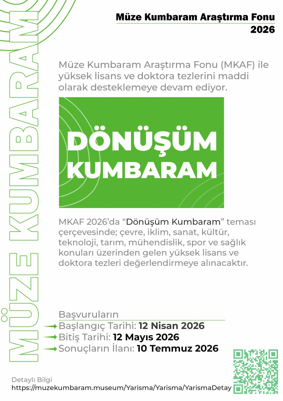 Müze Kumbaram tarafından bu yıl beşincisi düzenlenen Müze Kumbaram Araştırma Fonu (MKAF) 2026 başvuruları başladı. Bu yıl “Dönüşüm Kumbaram” temasıyla gerçekleştirilen program, yüksek lisans ve doktora tez çalışmalarını desteklemeyi amaçlamaktadır.