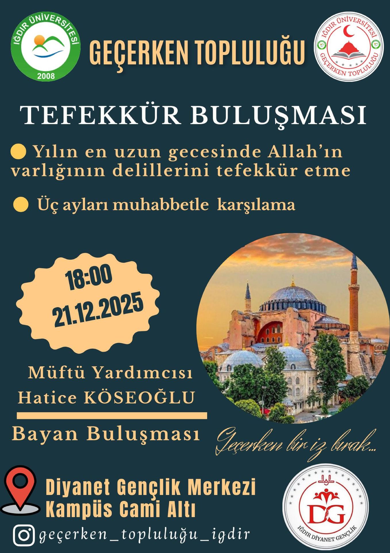 Üniversitemizin Geçerken Topluluğu'nun kadınlar için düzenlemiş olduğu 'Tefekkür Buluşması' yapılacaktır.
