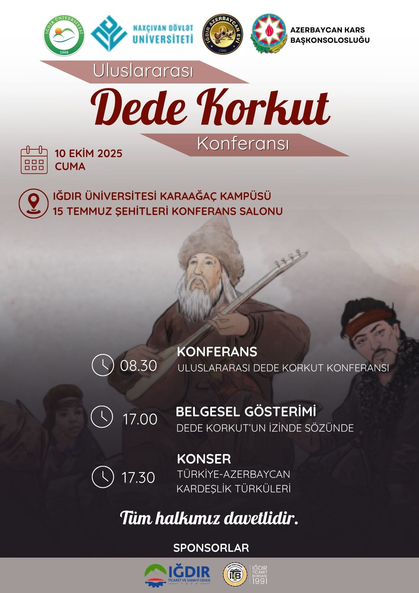 Iğdır Üniversitesi, Nahçıvan Devlet Üniversitesi, Iğdır Azerbaycan Evi (Iğdır Azerbaycan Dil, Tarih ve Kültür Birliğini Yaşatma ve Destekleme Derneği) ve Azerbaycan Kars Başkonsolosluğu iş birliğiyle “Uluslararası Dede Korkut Konferansı” düzenlenecektir. Türkiye’nin çeşitli üniversitelerinden ve Türk dünyasından Dede-Korkut üzerine çalışma yapan akademisyenlerin katılacağı konferansın ardından Dede Korkut üzerine belgesel gösterimi ve müzik dinletisi programı olacaktır.