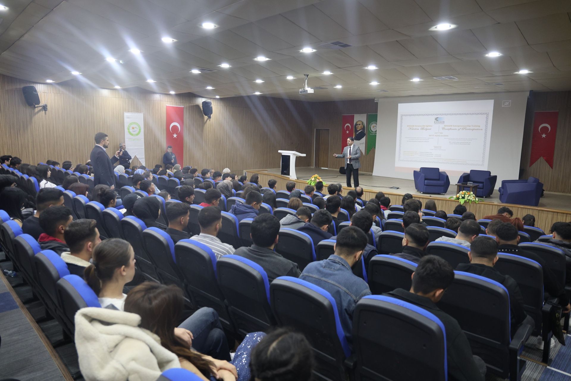 Doğru hedef belirlemenin ve kişisel gelişim sürecine erken başlamanın önemine dikkat çeken Gürel, Iğdır Üniversitesinin sunduğu geniş akademik ve sosyal imkânlar hakkında öğrencileri bilgilendirdi.