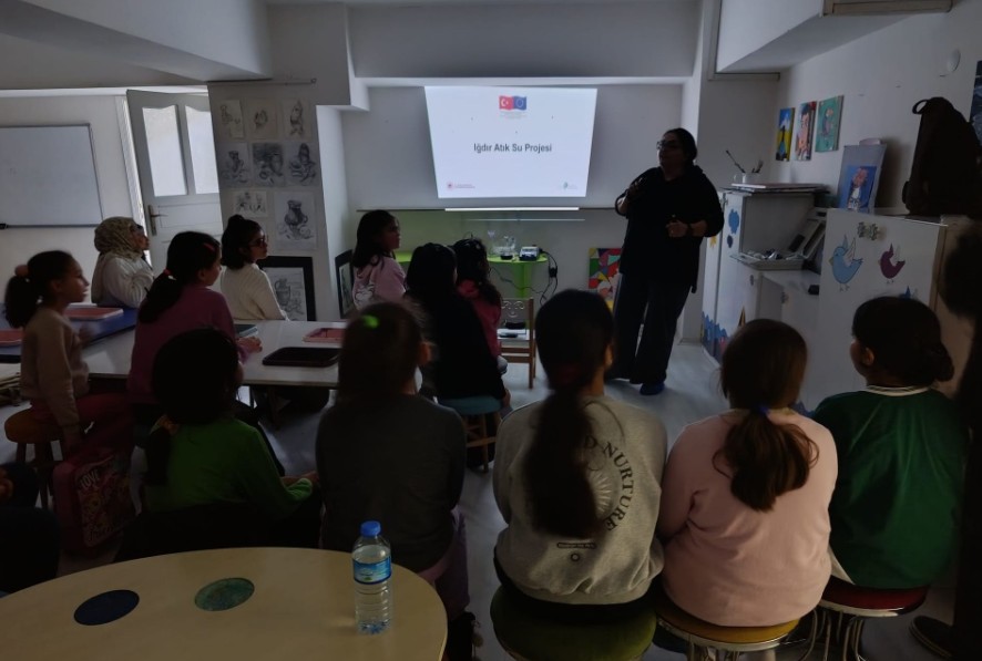 Doç. Dr. Aysun Altıkat ise Iğdır Evsel Atıksu Arıtma Tesisi'nde uygulanan arıtma proseslerini çocuklara uygun bir anlatımla aktararak, atıksu yönetiminin çevre ve insan sağlığı açısından önemine dikkat çekti.