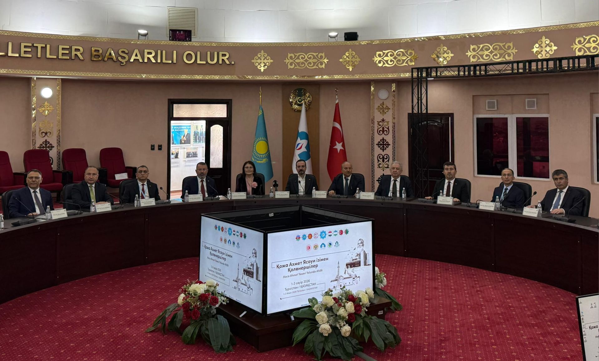 “Hoca Ahmet Yesevi Yolunda Ahilik” Sempozyumu kapsamında Kazakistan’da temaslarını sürdüren Rektörümüz Prof. Dr. Ekrem Gürel, AK Parti Genel Başkan Yardımcısı ve Türk Devletleri ile İlişkiler Başkanı Prof. Dr. Kürşat Zorlu başkanlığında düzenlenen Ahmet Yesevi Üniversitesi Senato Toplantısı’na katıldı.