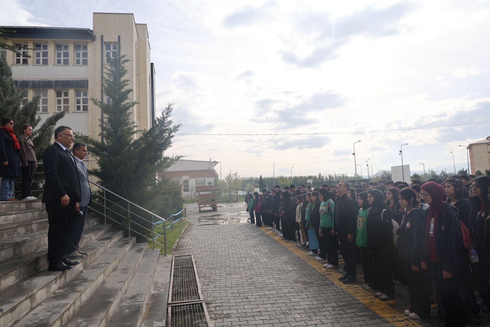 Rektör Gürel, Lise Öğrencileriyle Ders Zili Öncesi İstiklal Marşı Okudu