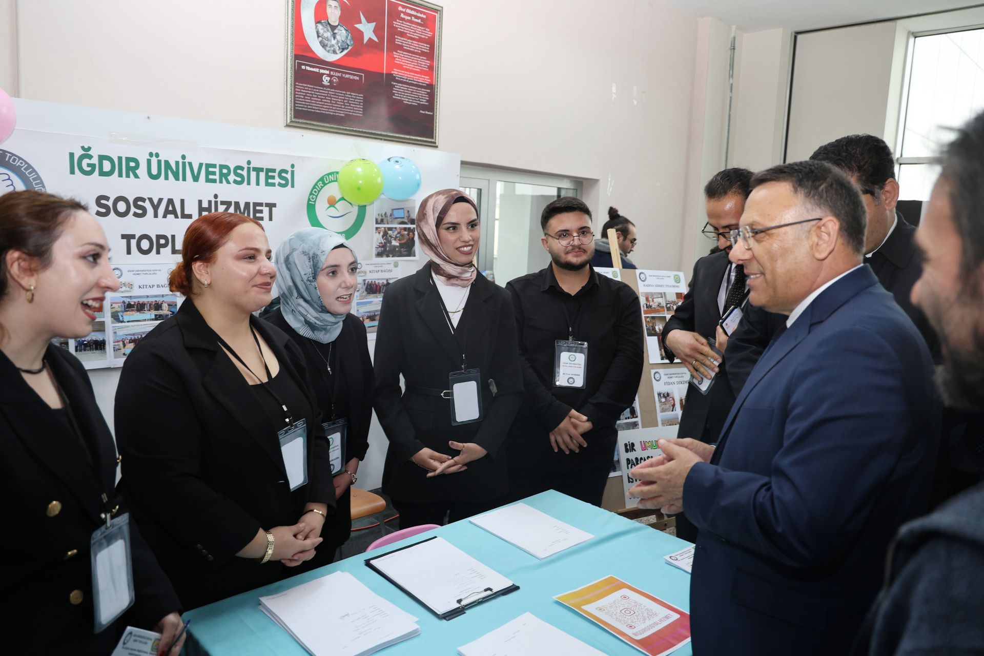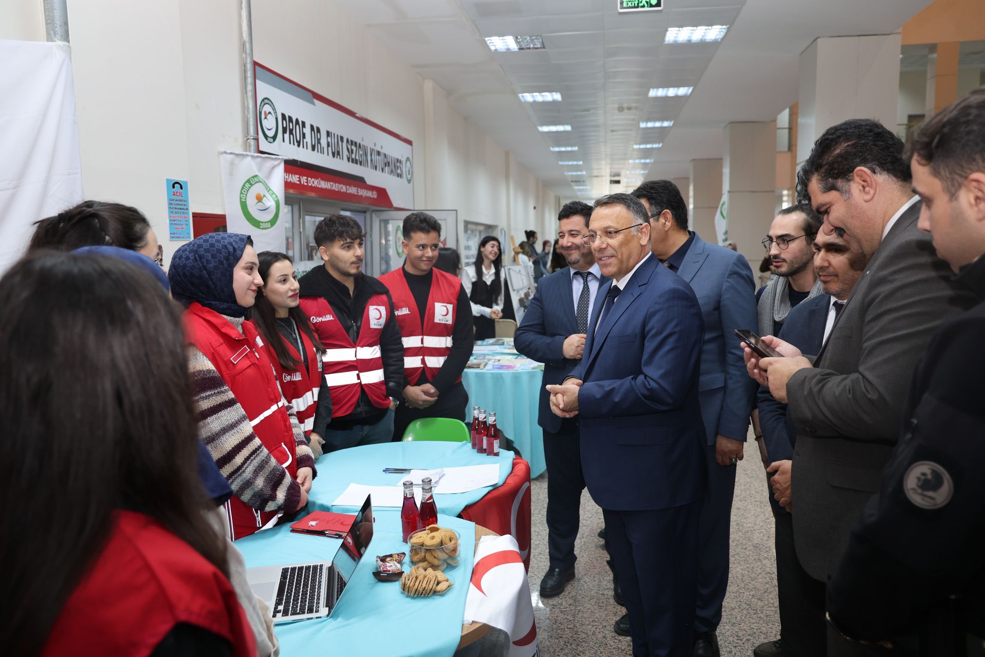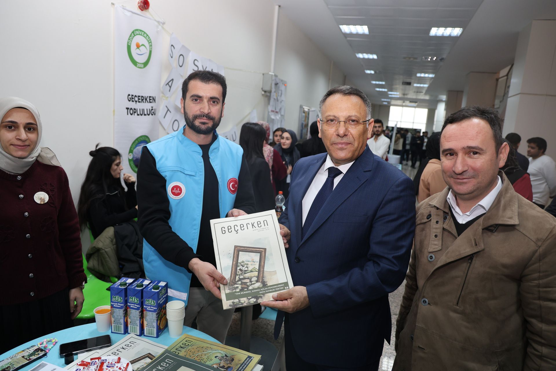 Mediko Sosyal Binasında kurulan stantlarda toplulukların faaliyetleri hakkında bilgi alan Rektör Gürel, ayrıca öğrencilerin ihtiyaç ve taleplerini de dinledi.
