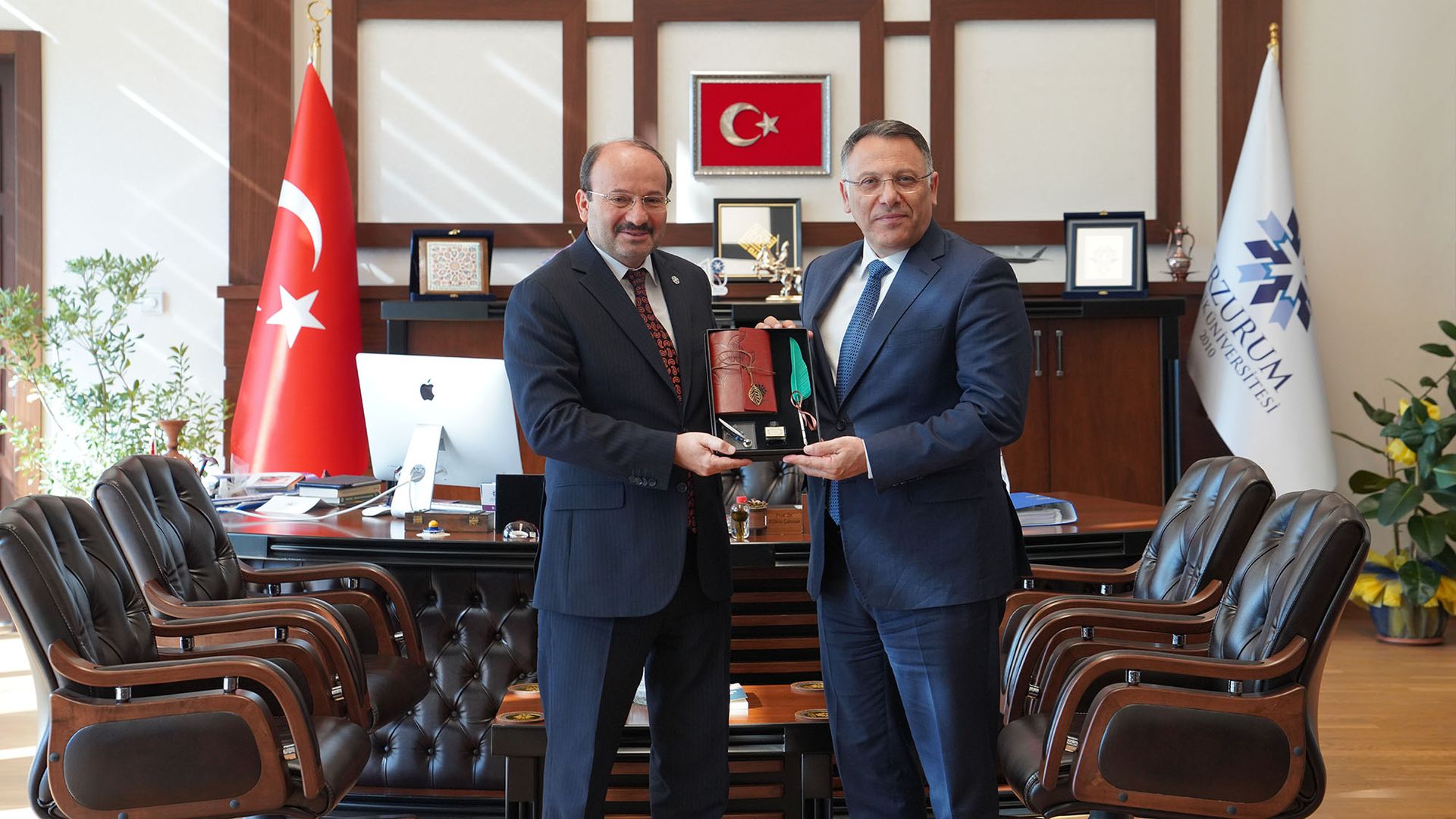 Üniversitemiz Rektörü Prof. Dr. Ekrem Gürel, Erzurum Teknik Üniversitesi Rektörü Prof. Dr. Bülent Çakmak’ı makamında ziyaret etti.