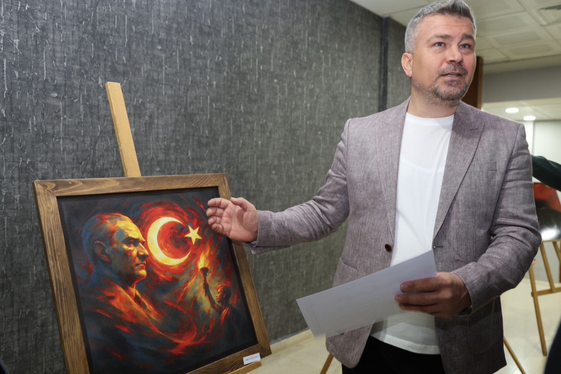 Etkinlik kapsamında açılan “29 Ekim Ruhu” temalı sergide ise sanatçılar Ebru Köse Koçak, Turgay Karataş, Abdullah Gümüş, Tuncay Çiçek, Elif Kırkkeseli, Fatime Savaş Can, Rabia Karta, Burcu Toğrul, Suna Topçulu ve Haluk Kırkkeseli’nin eserleri sanatseverlerle buluştu.