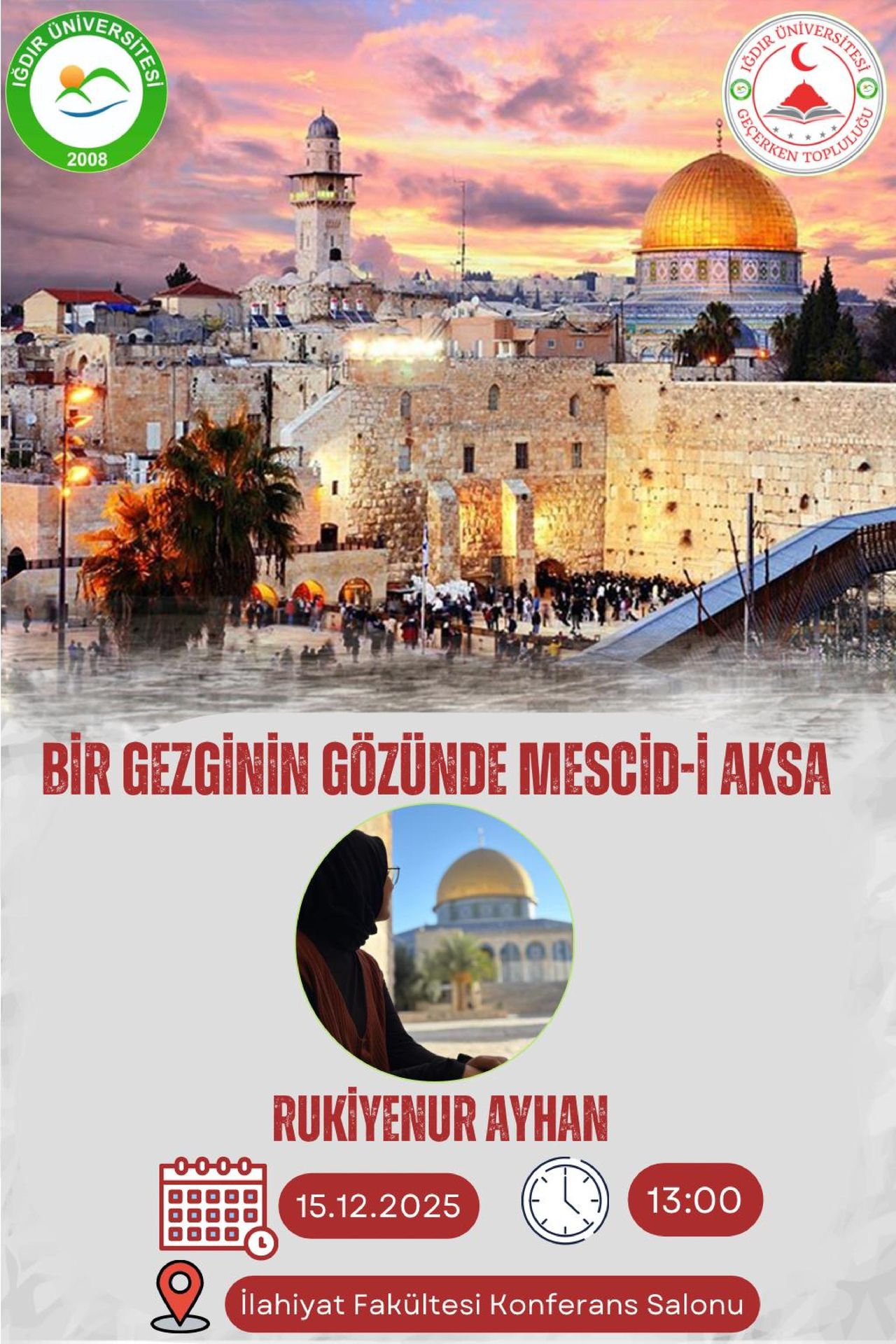 Üniversitemizde ''Bir Gezginin Gözünde Mescid-i Aksa'' adlı konferans düzenlenecektir. Programa tüm öğrenci, personel ve vatandaşlarımız davetlidir.