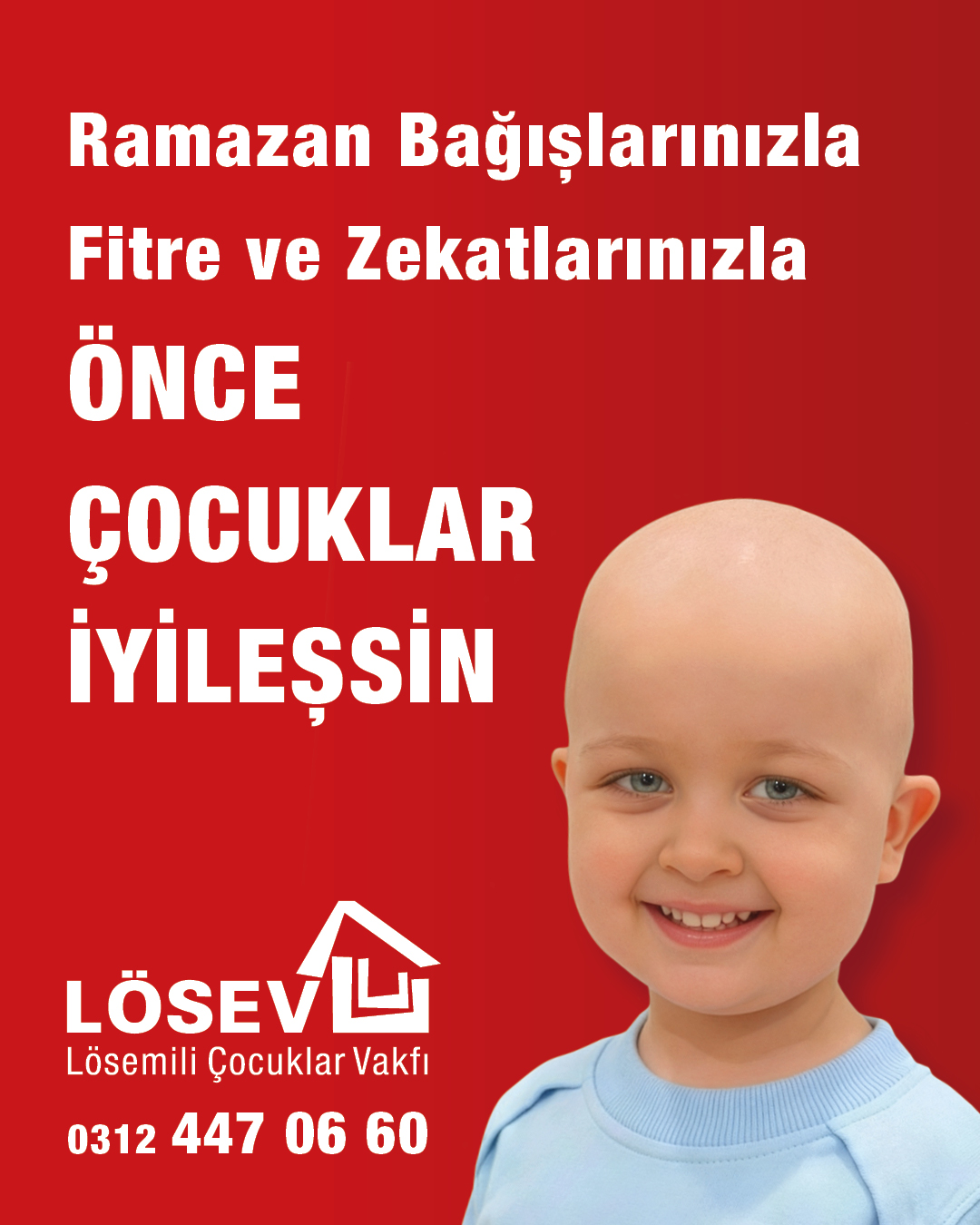 Kanserle mücadele eden ailelerimizi zorlu tedavi süreçlerinde desteklemek adına hizmetlerine hız kesmeden devam edilmektedir. Bu kapsamda, LÖSEV, her yıl olduğu gibi bu yıl da “Ramazan Bağışlarınızla Önce Çocuklar İyileşsin” denilerek, Ramazan ayı özelinde sürdürülen kampanya çalışmalarına desteklerinizle siz değerli paydaşlarımızı da bu mutluluğa ortak olmaya davet etmektedir.