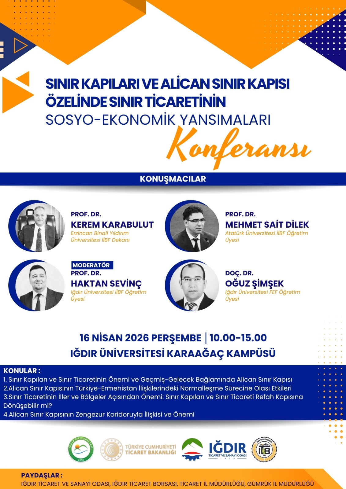 Üniversitemizde ''Sınır Kapıları ve Alican Sınır Kapısı Özelinde Sınır Ticaretinin Sosyo-Ekonomik Yansımaları'' konulu konferans programı düzenlenecektir. Programa tüm personel ve öğrencilerimiz davetlidir.