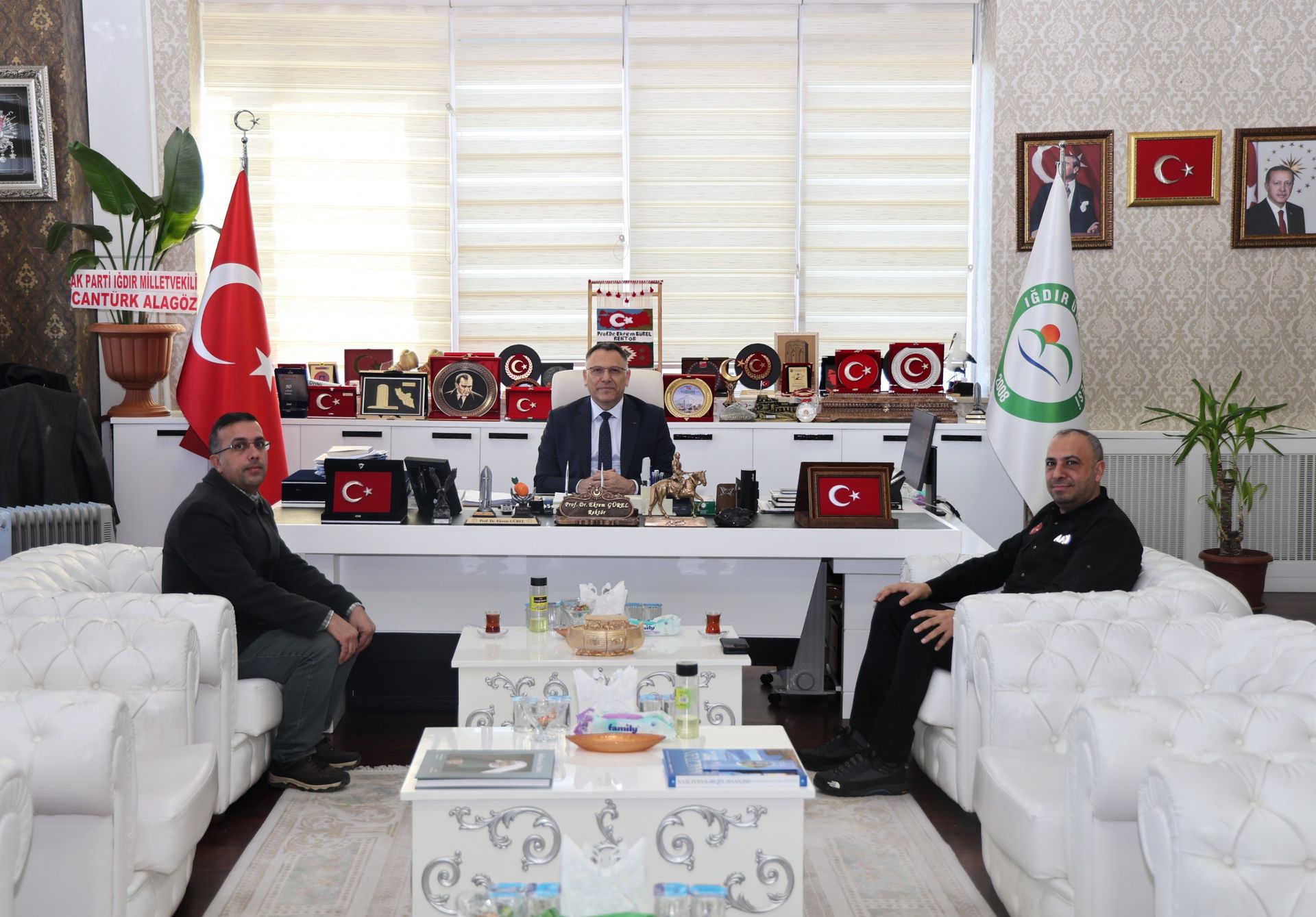 Üniversitemiz Rektörü Prof. Dr. Ekrem Gürel, Iğdır İl Afet ve Acil Durum Müdürlüğü (AFAD) İl Müdürü Fikret Deniz’i makamında kabul etti.