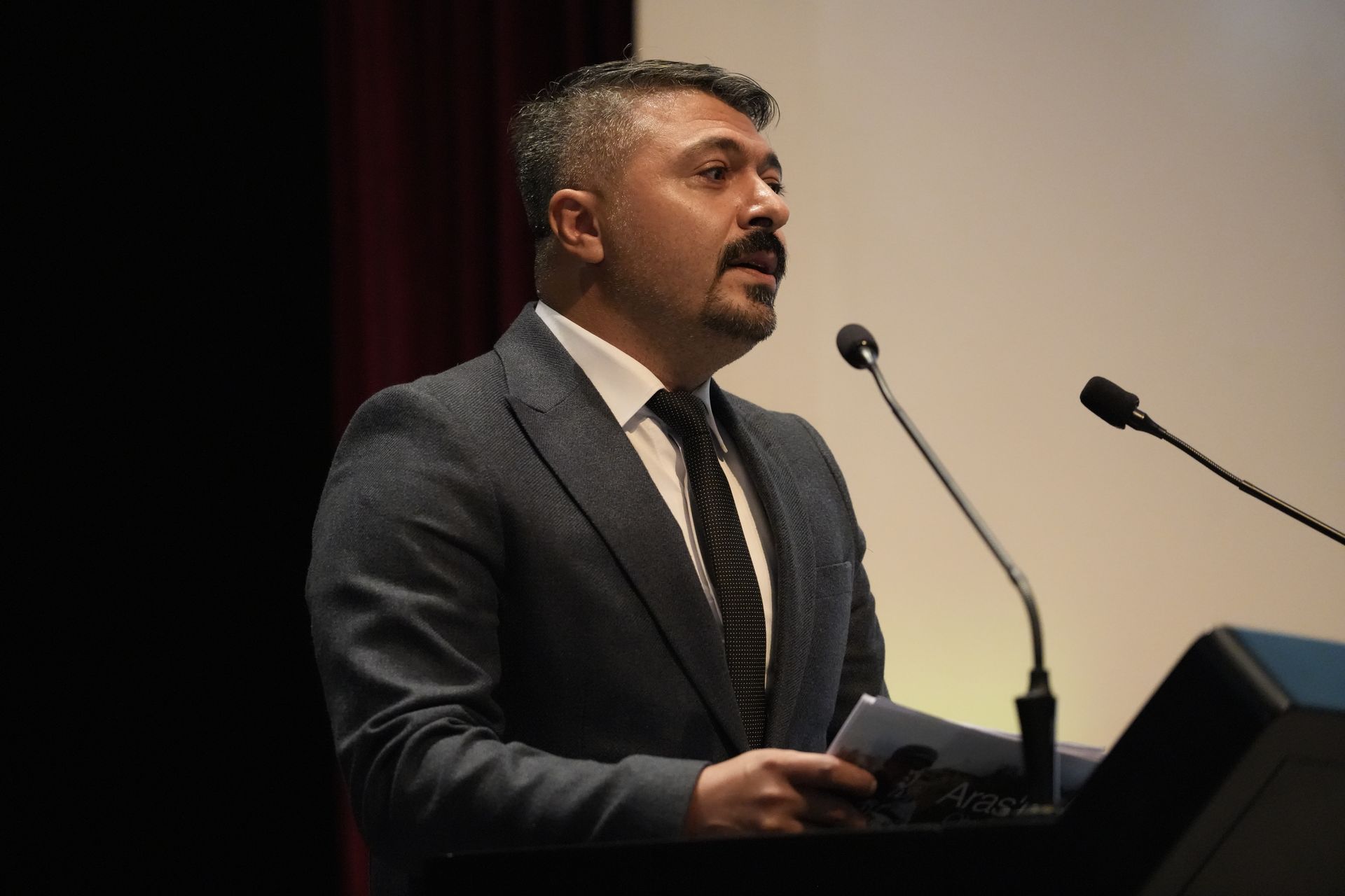 Gösterim öncesinde belgesel üzerine bir sunum yapan yönetmen Öğr. Gör. Ali Parim, “Aras ismi bu coğrafyada çok önemli bir yere sahip. Pek çok insanın ya ismi ya da soyismi Aras’tır. Aras Nehri bizim can suyumuzdur. Medeniyetimizin kaynağıdır. Biz de hem Aras’ın bu yönüne dikkat çekmek hem de Aras coğrafyasında yıllardır konuşulmayan, görmezden gelinen bir hafızayı kayıt altına almayı hedefleyerek çektik belgeselimizi. Aras Nehri’nin karşı kıyısına bakarken bir zamanlar aynı toprağı paylaşmış insanların sessizliğini duyuyorsunuz. Bu sessizlik, sınırların çizdiği coğrafi ayrılıktan çok daha derin bir kopuşu anlatıyor. Belgeselde anlatılan Hacı Bayram – bugünkü adıyla Bagaran – kaybolmuş bir belleğin, zorla silinmiş bir kültürel hafızanın simgesi. O topraklarda yaşamış insanların torunlarıyla konuşmak, onların hafızalarındaki köprüleri bulmak bizim için çok kıymetliydi.” ifadelerini kullandı.