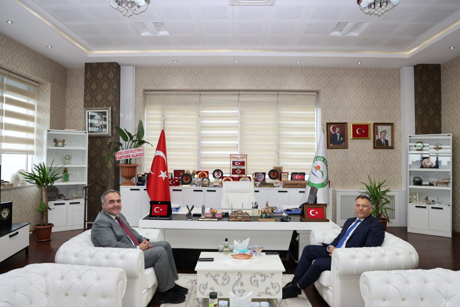 Çankırı Karatekin Üniversitesi Rektörü Prof. Dr. Mevlüt Karataş, beraberindeki heyet ile birlikte Üniversitemiz Rektörü Prof. Dr. Ekrem Gürel’i makamında ziyaret etti.