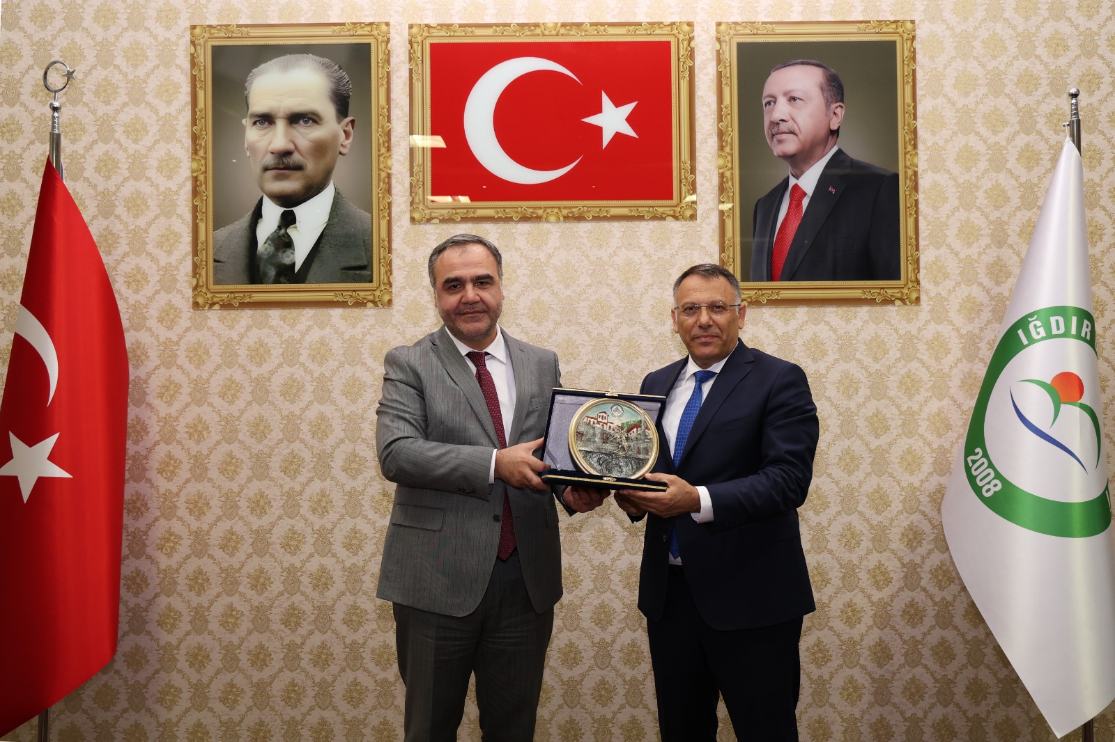 Çankırı Karatekin Üniversitesi Rektörü Prof. Dr. Mevlüt Karataş, beraberindeki heyet ile birlikte Iğdır Üniversitesi Rektörü Prof. Dr. Ekrem Gürel’i makamında ziyaret etti.