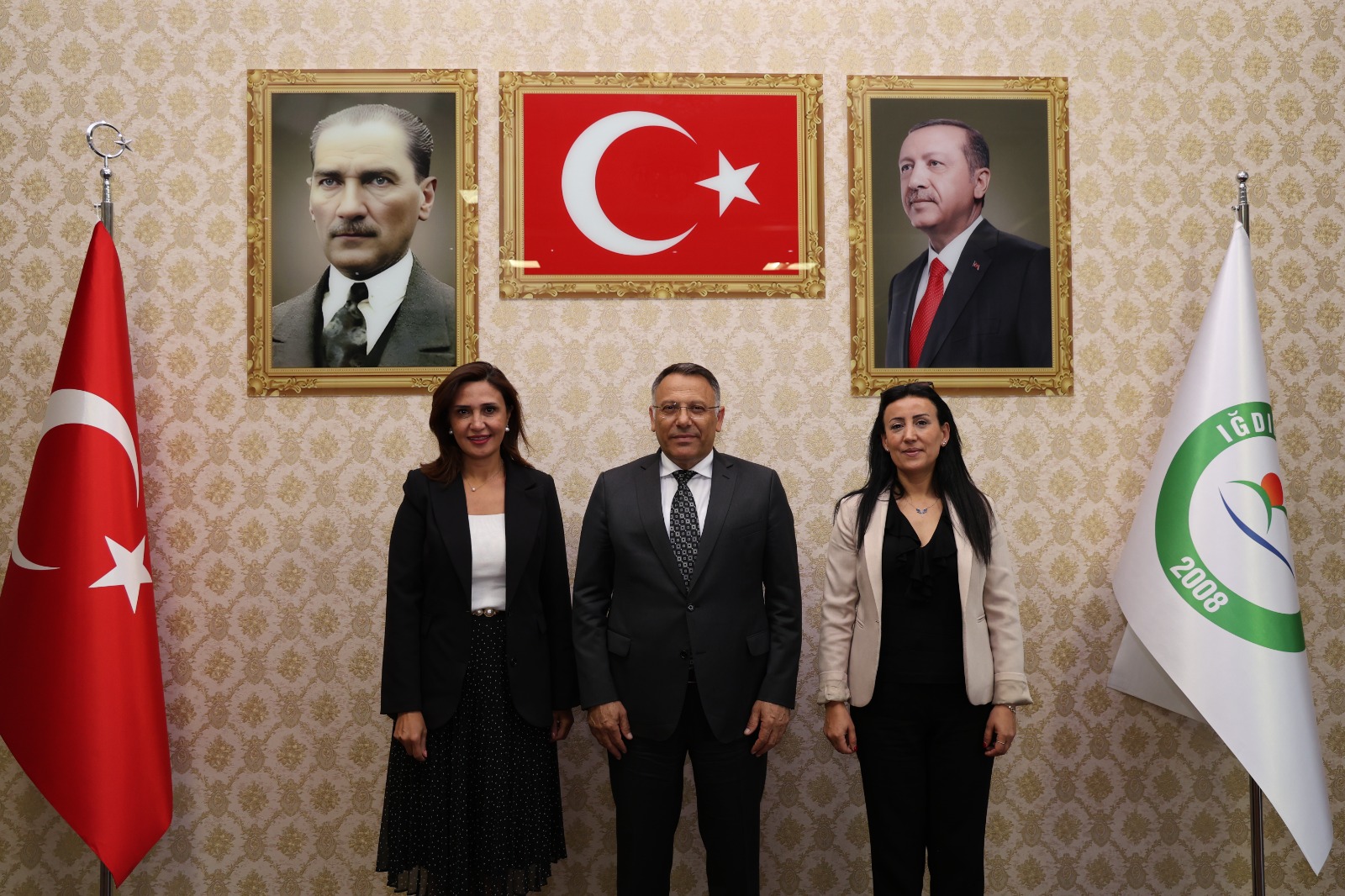 Üniversitemiz Rektörü Prof. Dr. Ekrem Gürel, Iğdır Ticaret ve Sanayi Odası Kadın Girişimciler Kurulu Başkanı Duygu Kılıçtek ve Iğdır TSO Genel Sekreteri Gökçen Turan’ı makamında kabul etti.