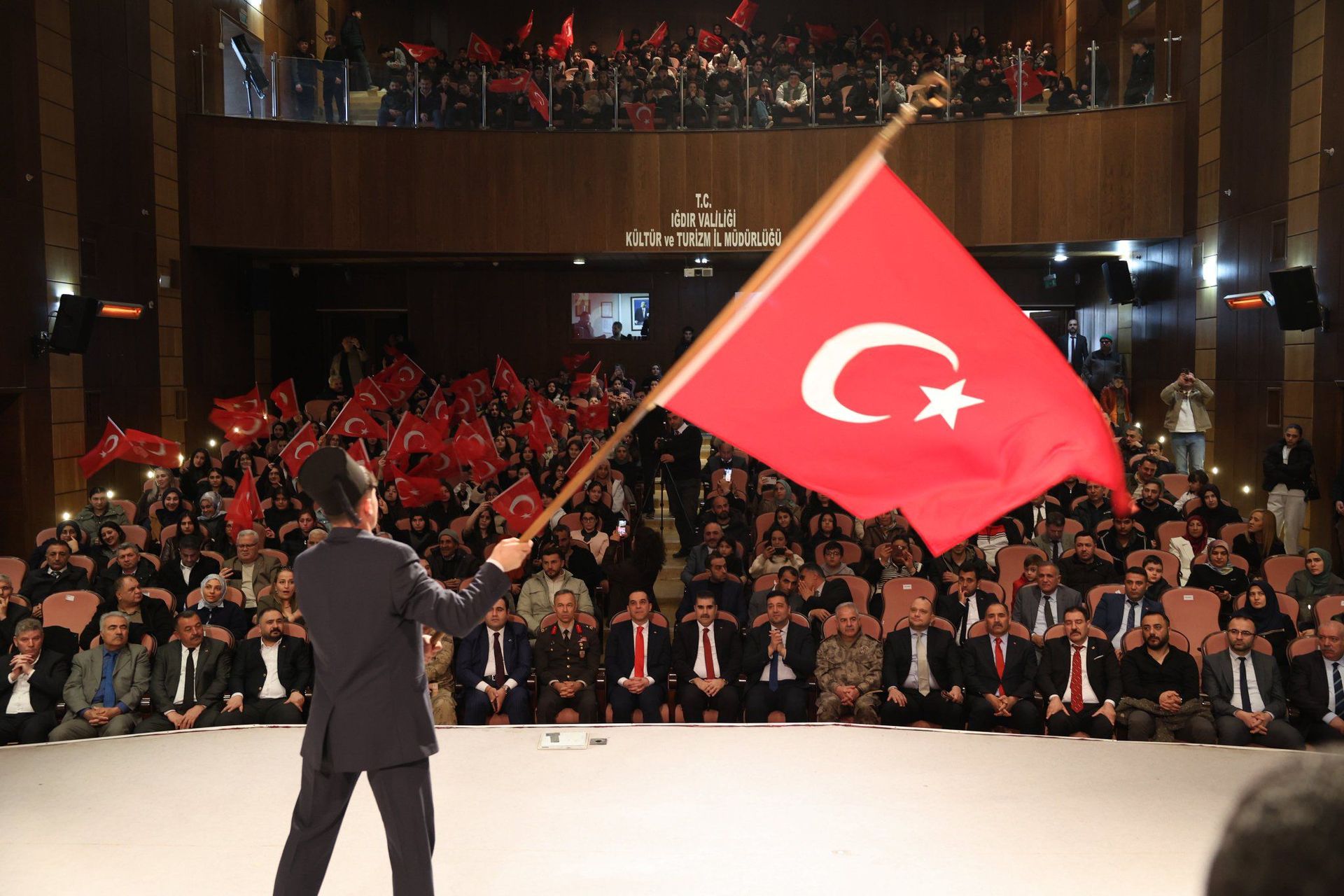 Kültür Merkezi’nde düzenlenen programa; Iğdır Valisi M. Fırat Taşolar, Garnizon Komutanı Tuğgeneral Cavit Tütüncü, Cumhuriyet Başsavcısı Meriç Dede, Üniversitemiz Rektör Yardımcısı Prof. Dr. Haktan Sevinç, il protokolü, kurum amirleri ve öğrenciler katıldı.