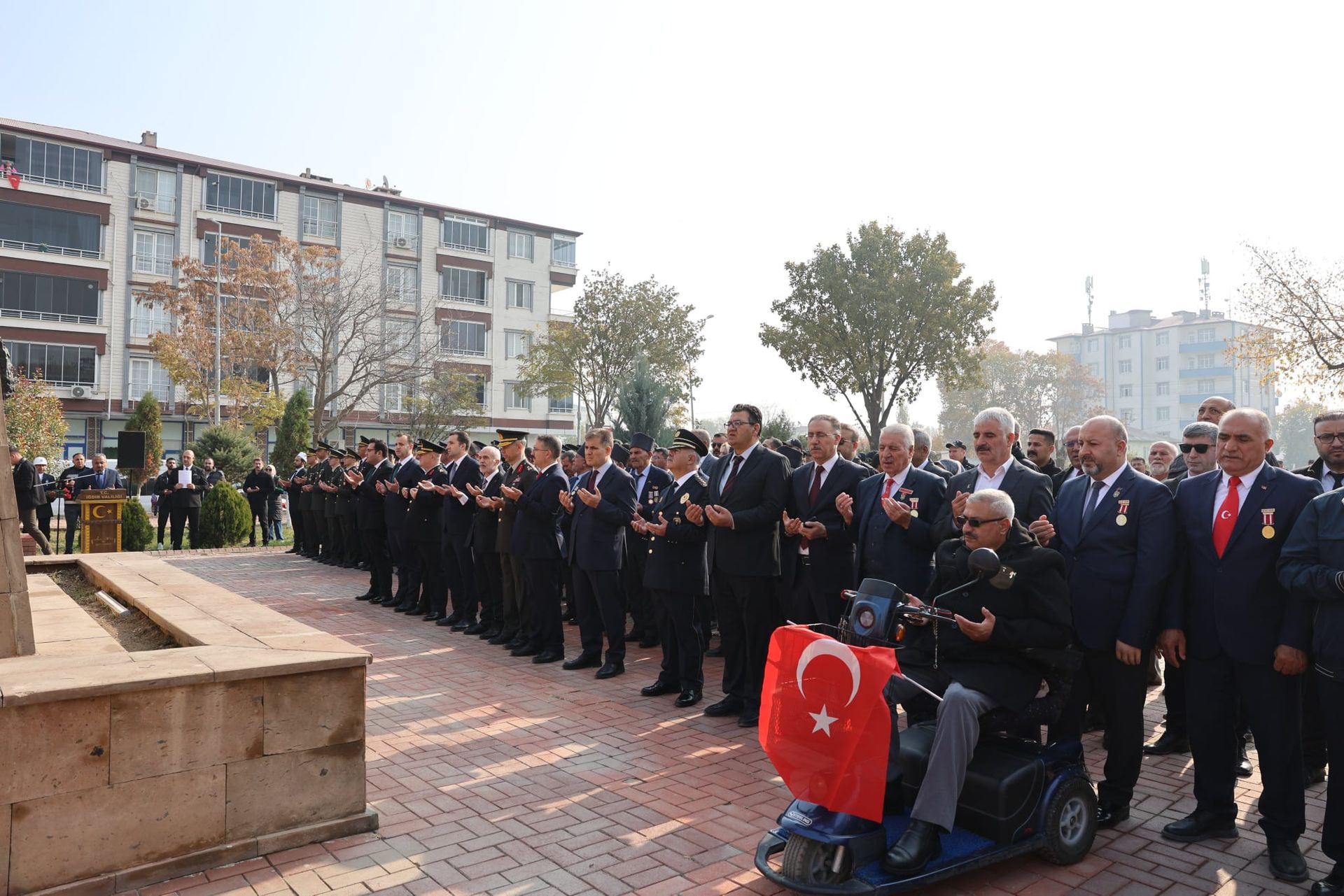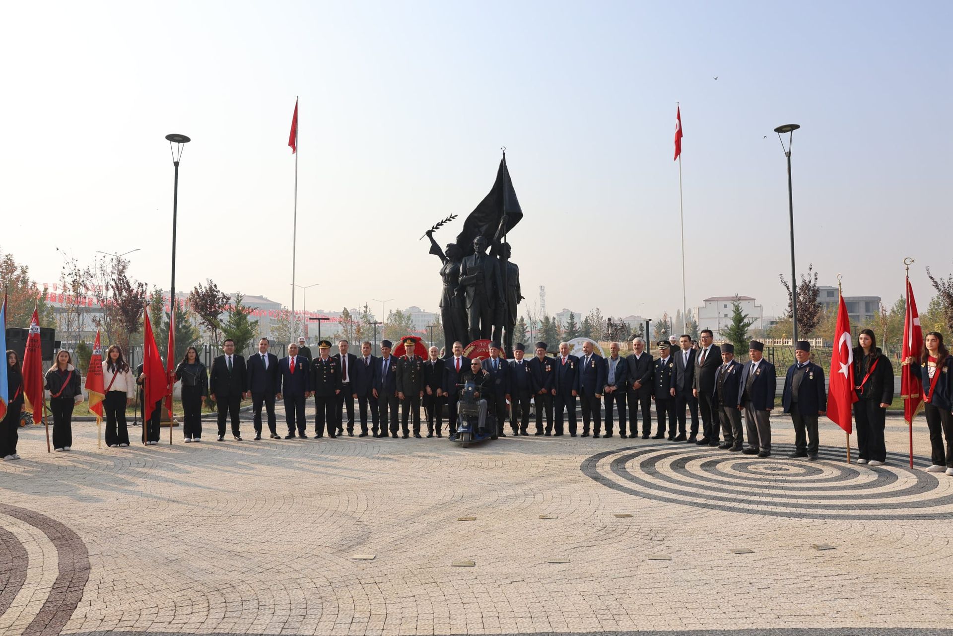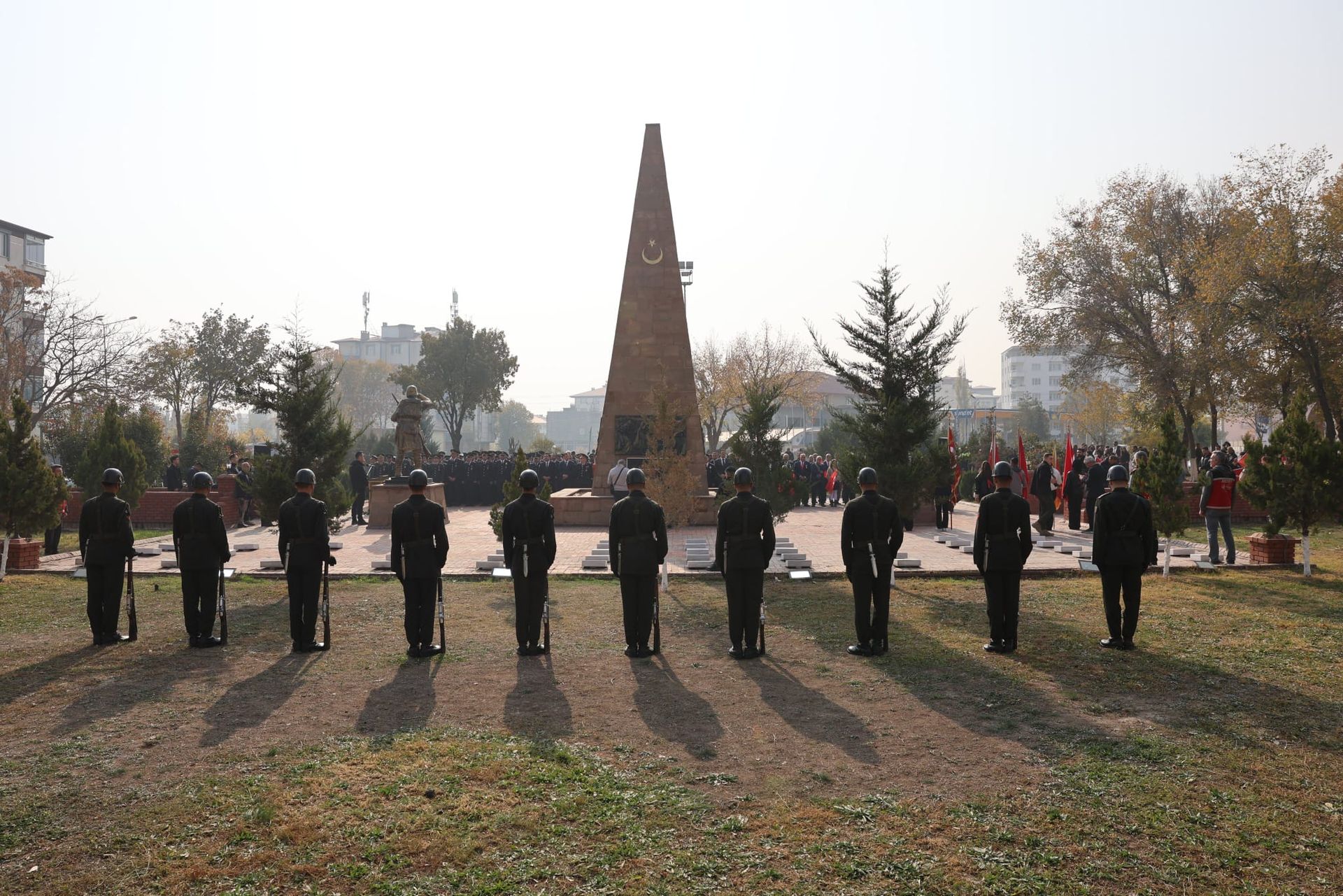 İlk olarak Iğdır Valisi Ercan Turan, Garnizon Komutanı Tuğgeneral Cavit Tütüncü ve Belediye Başkan Yardımcısı Nesim Yiğit tarafından Atatürk Anıtı'na çelenkler sunuldu.