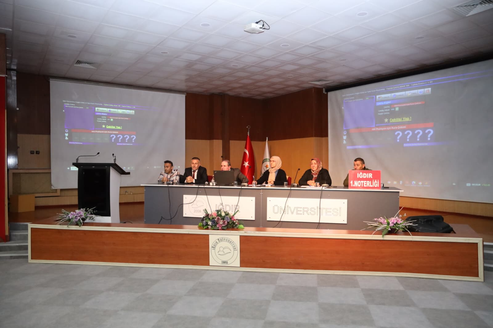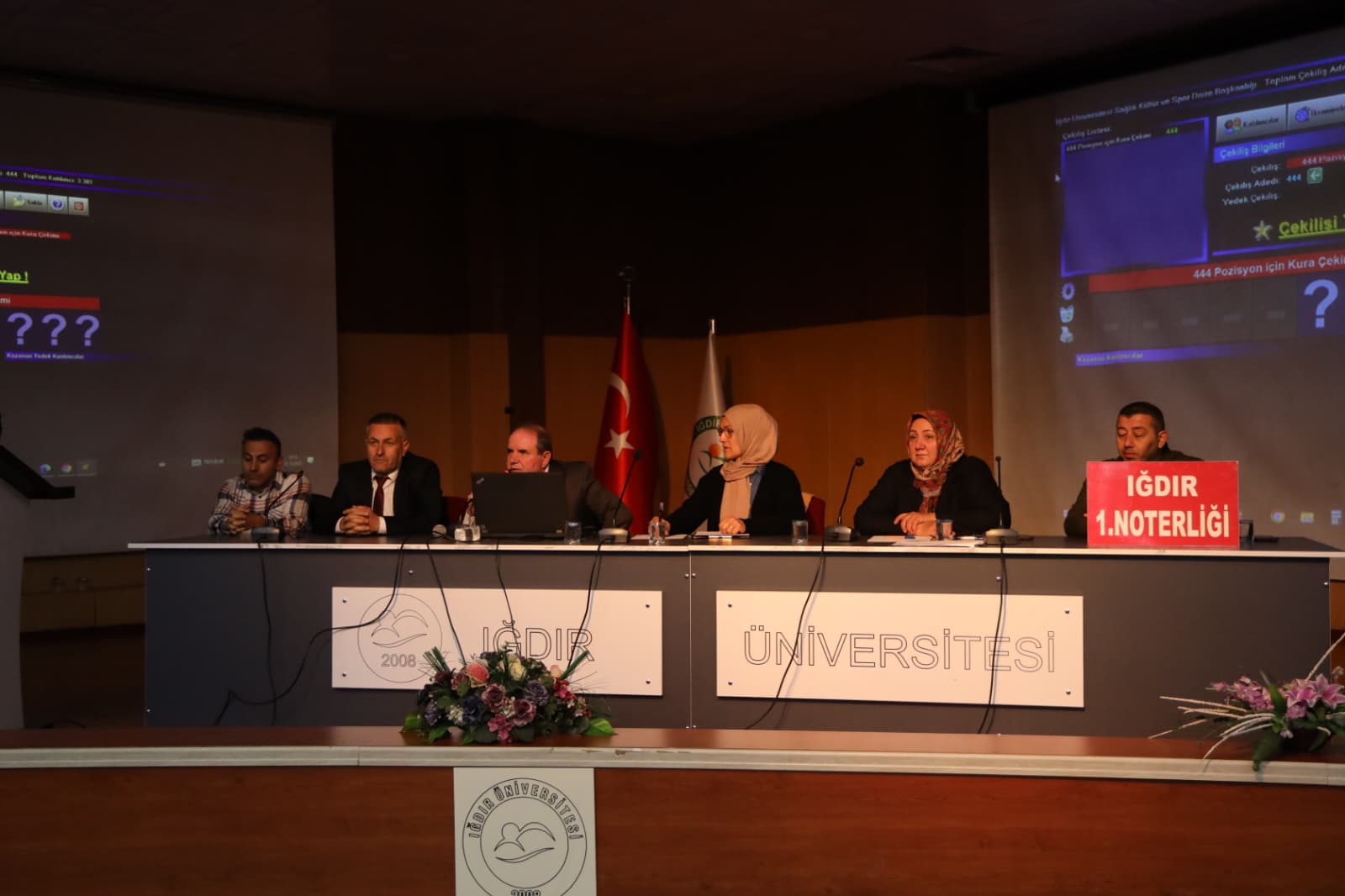 Karaağaç Kampüsü 15 Temmuz Şehitleri Konferans Salonu’nda düzenlenen kura çekimine Iğdır 1. Noteri Dursun Murat Ay, akademik ve idari personelimiz ile öğrenciler katıldı.