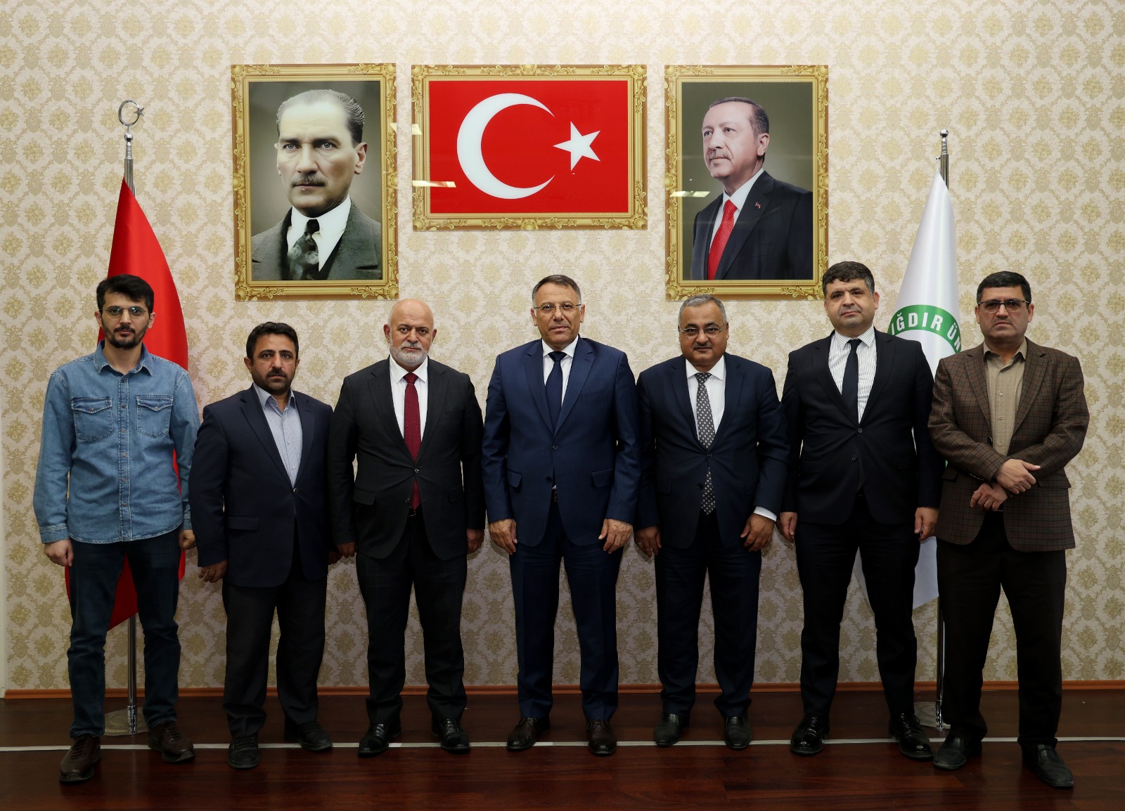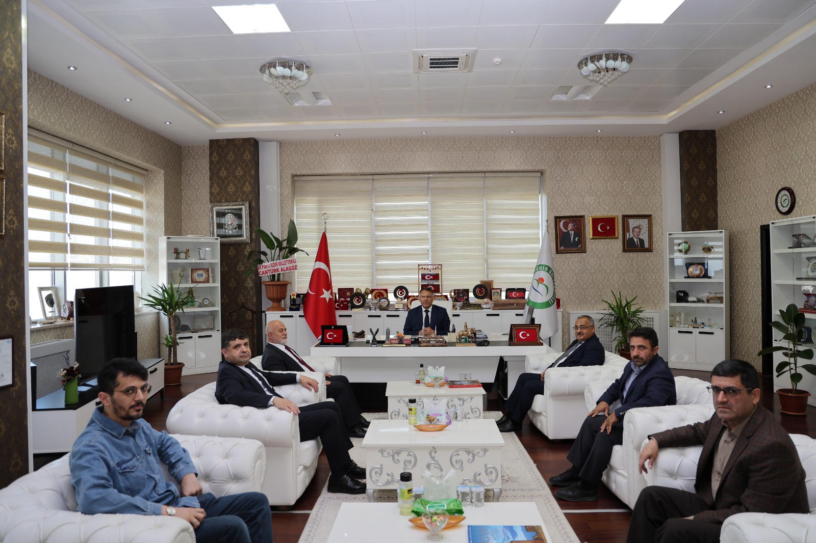 Iğdır İl Müftüsü Zahit Demirel, Nahçıvan Din Hizmetleri Ateşesi Selami Aydın ve Nahçıvan Ticaret Ateşesi Engin Iğdır, beraberlerindeki heyetle birlikte Rektörümüz Prof. Dr. Ekrem Gürel’e nezaket ziyaretinde bulundu.