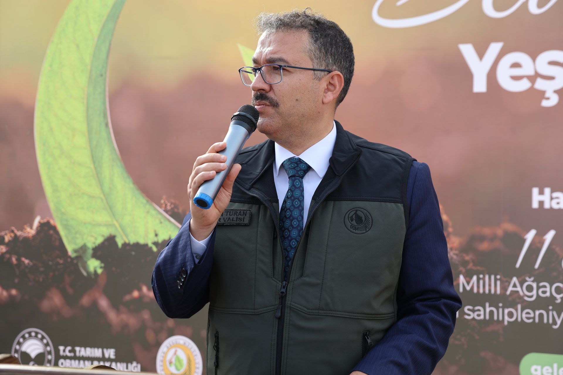 Turan, ağacın ve ormanların çevreyle uyumlu, sürdürülebilir bir yaşamın temeli olduğunu vurgulayarak sonbahar mevsiminde 60 dönümlük Millet Ormanı ve yanındaki ağaçlandırma sahasında 52 bin adet fidanın dikileceğini, yıl sonuna kadar ise toplam 80 bin fidanın toprakla buluşturulmasını hedeflendiğini dile getirdi.