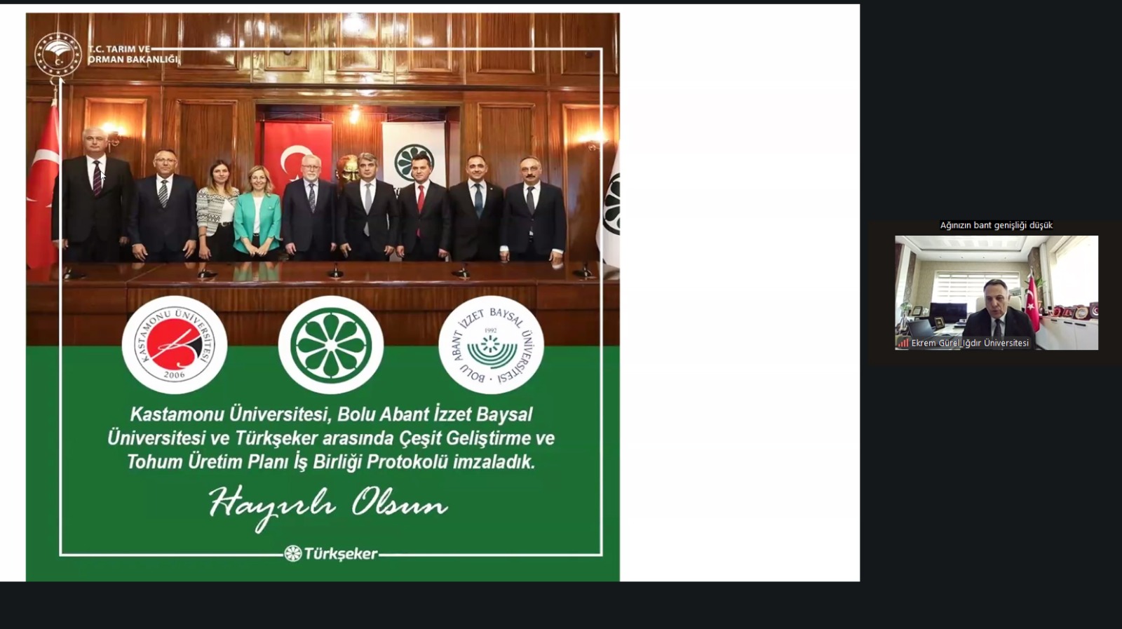 Rektörümüz Prof. Dr. Ekrem Gürel; Prof. Dr. Songül Gürel ve Prof. Dr. Mehmet Cengiz Baloğlu ile birlikte yürütücülüğünü üstlendiği Türkiye’nin ilk yerli ve millî şeker pancarı tohumu geliştirme projesini kapsamlı bir sunumla anlattı.