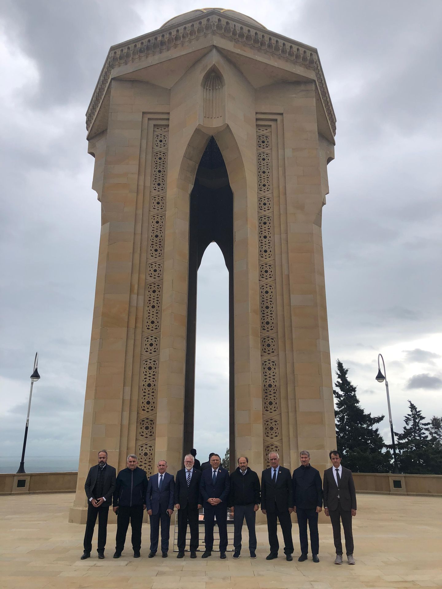 Heyet ilk olarak, 20 Ocak 1990’da Azerbaycan halkının bağımsızlık uğruna verdiği destansı mücadelenin simgesi haline gelen 20 Ocak şehitlerinin ebedi istirahatgâhı Şehitler Hiyabanına karanfil bırakarak dua etti.