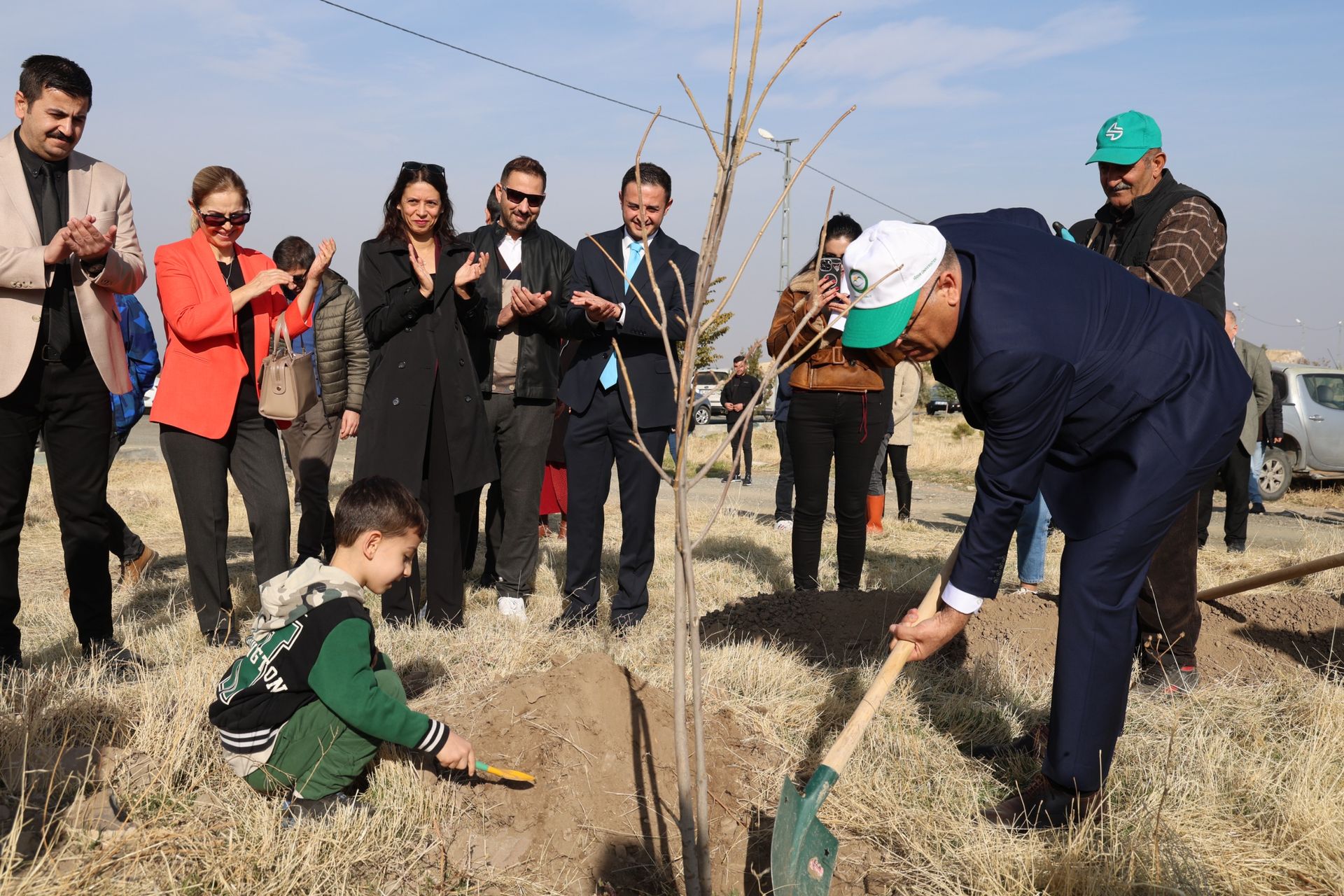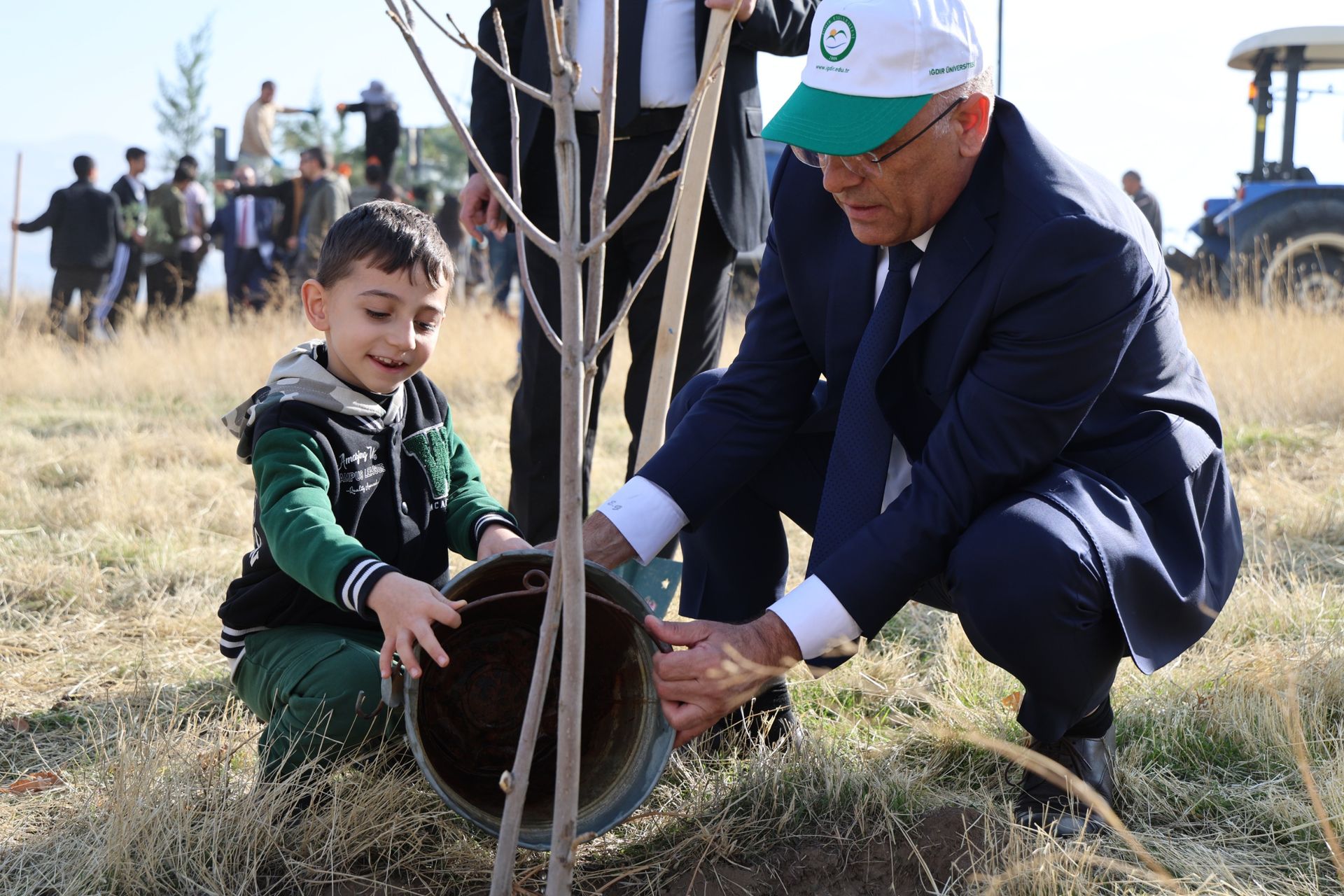 Rektör Gürel, etkinlikte ilk fidanı minik Furkan ile birlikte dikerek geleceğe nefes olmanın sembolik başlangıcını yaptı.