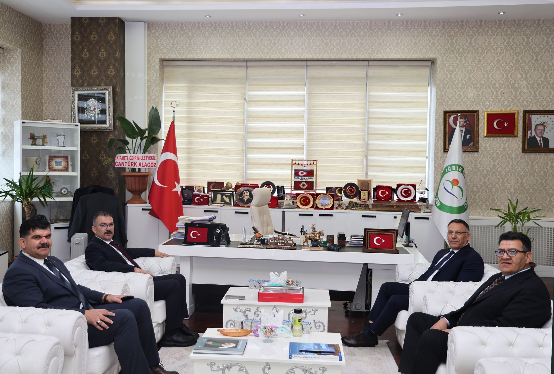 Rektörlük makamında gerçekleşen ziyarette Vali Turan ve Rektör Gürel, Iğdır’da yürütülen çalışmalar, üniversite-kamu iş birliği ve kente sağlanan katkılar üzerine değerlendirmelerde bulundular.
