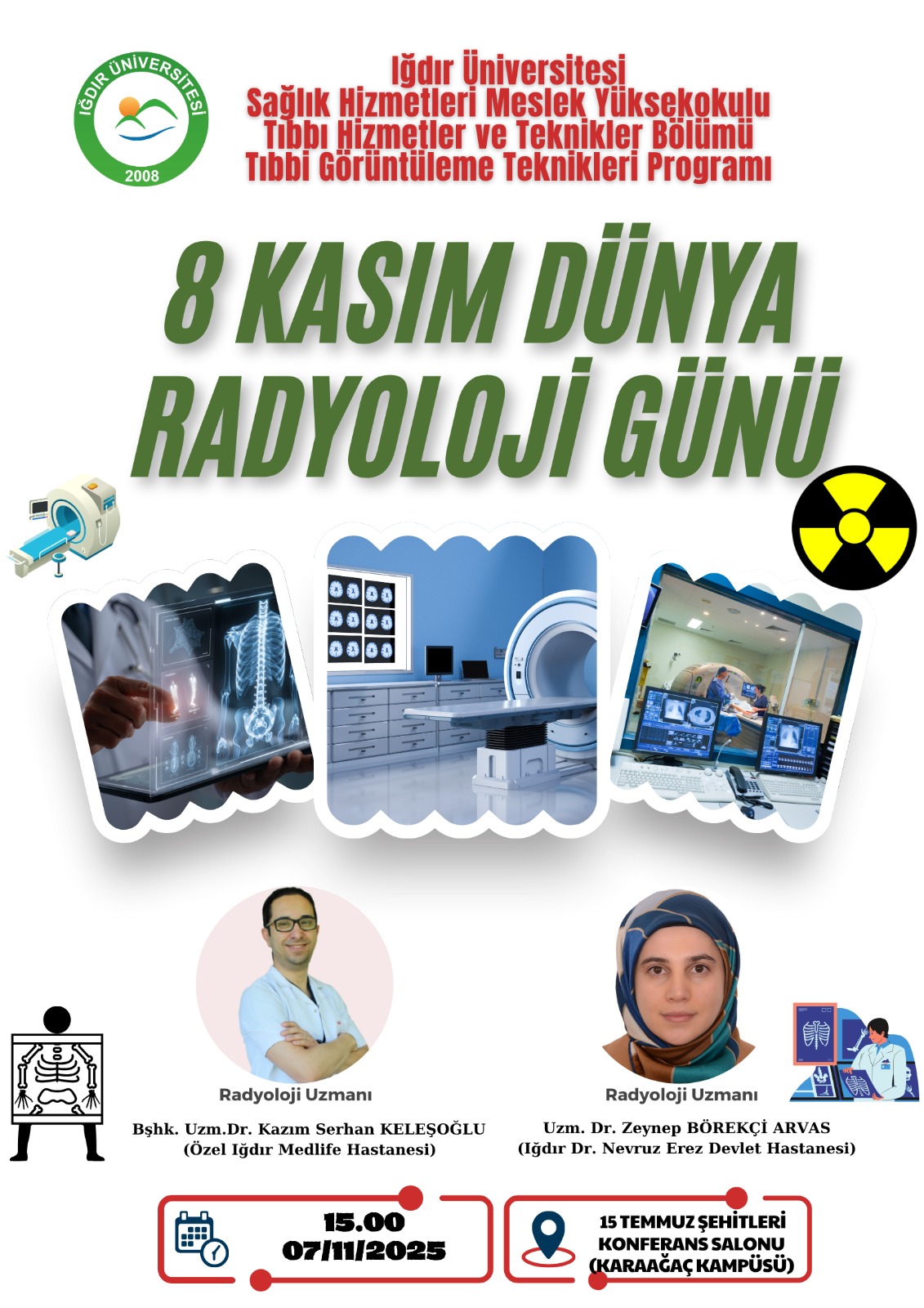 Üniversitemizde '8 Kasım Dünya Radyoloji Günü' konulu konferans düzenlenecektir. Programa tüm öğrenci, personel ve vatandaşlarımız davetlidir.