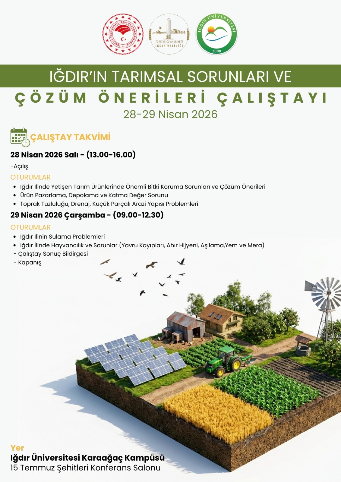 Üniversitemizde ''Iğdır'ın Tarımsal Sorunları ve Çözüm Önerileri'' çalıştayı  düzenlenecektir. Programa tüm personel ve öğrencilerimiz davetlidir.
