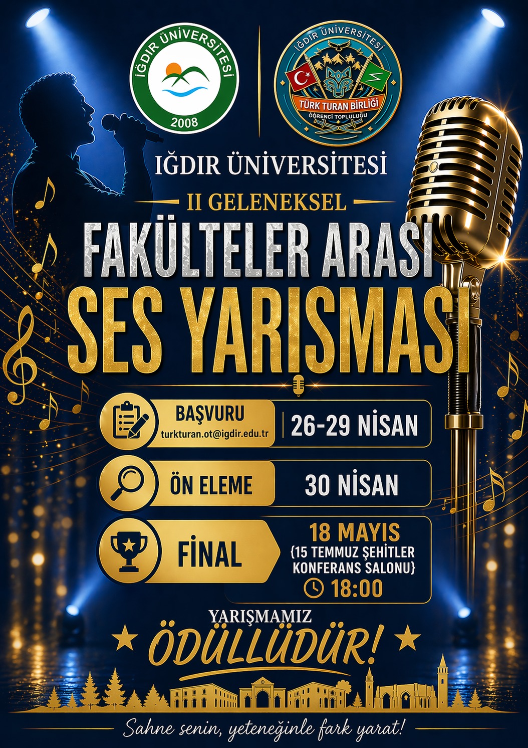 Üniversitmizde Türk Turan Birliği Topluluğu tarafından ''II. Geleneksel Fakülteler Arası Ses Yarışması'' düzenlenecektir.