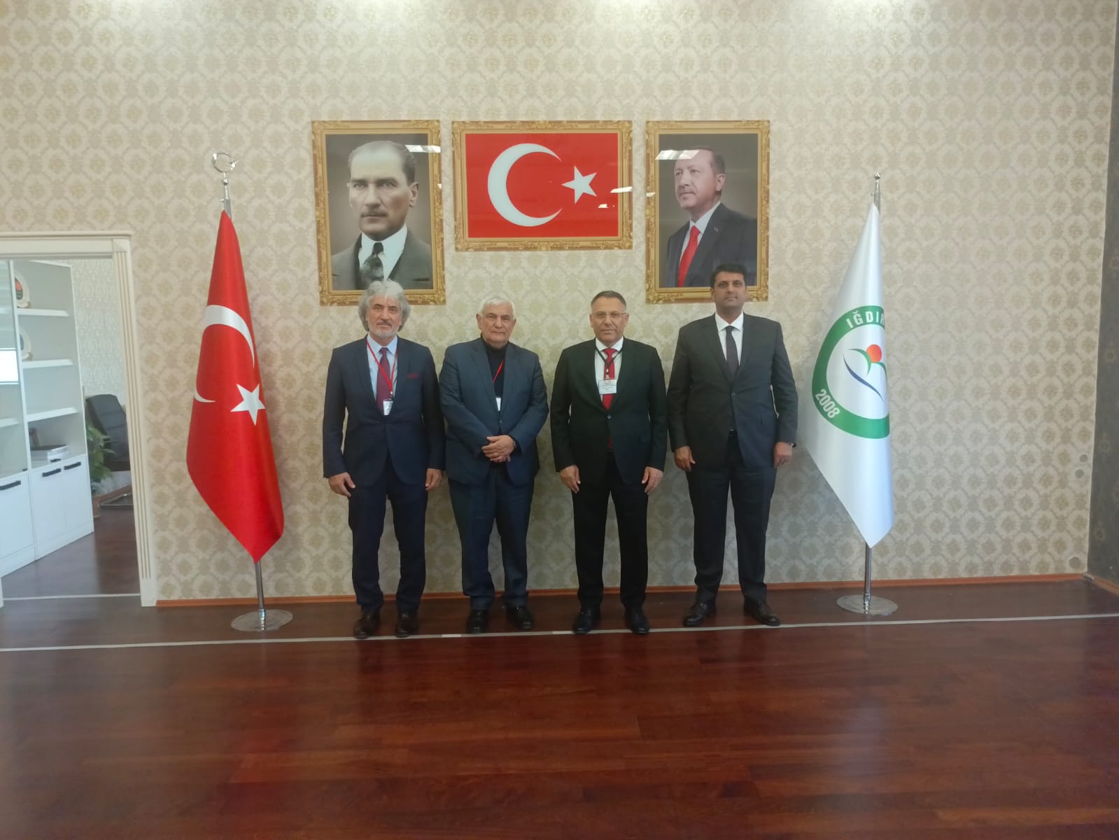Üniversitemiz ev sahipliğinde düzenlenen “Uluslararası Dede Korkut Konferansı” dolayısıyla Iğdır’da bulunan Azerbaycan Diller Üniversitesi Rektörü Prof. Dr. Kamal Abdulla, Nahçıvan Devlet Üniversitesi Rektörü Prof. Dr. Elbrus İsayev ve Ardahan Üniversitesi Kurucu Rektörü ve Kafkasya Üniversiteler Birliği Başkanı Prof. Dr. Ramazan Korkmaz, Rektörümüz Prof. Dr. Ekrem Gürel’i makamında ziyaret ettiler.