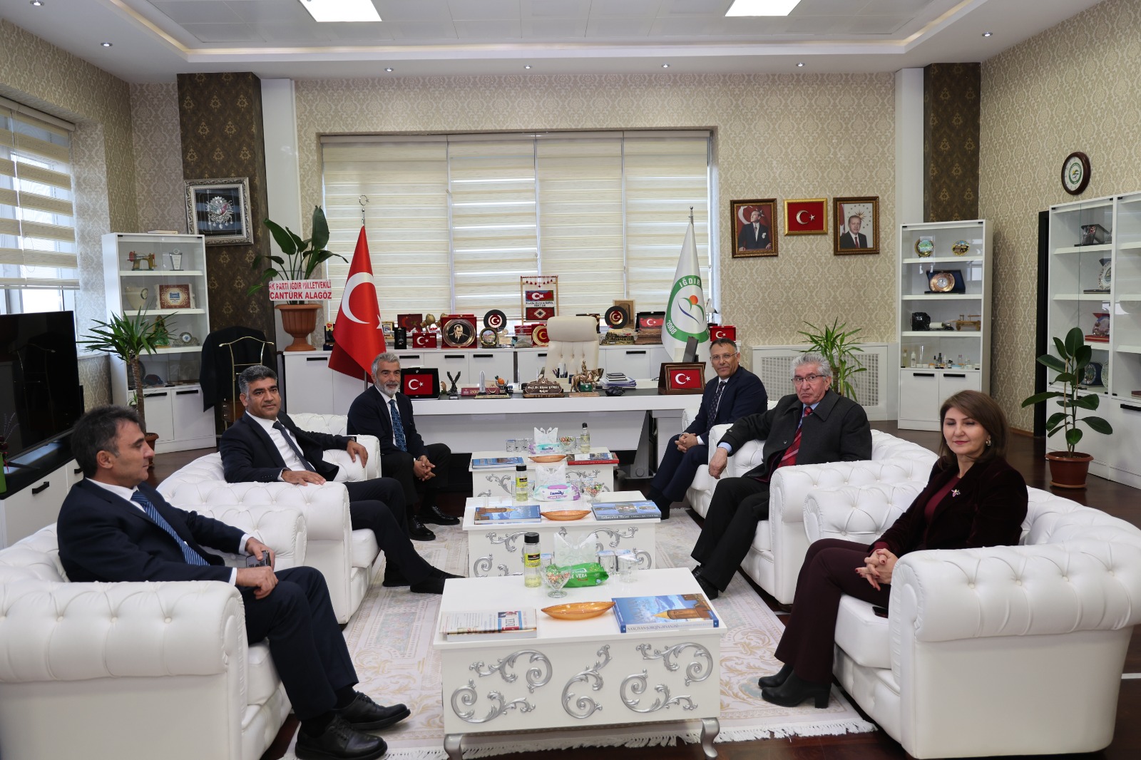Iğdır Milletvekili Cantürk Alagöz, AK Parti Iğdır İl Başkanı Ali Kemal Ayaz ve beraberindeki heyet ile birlikte Rektörümüz Prof. Dr. Ekrem Gürel’e nezaket ziyaretinde bulundu.