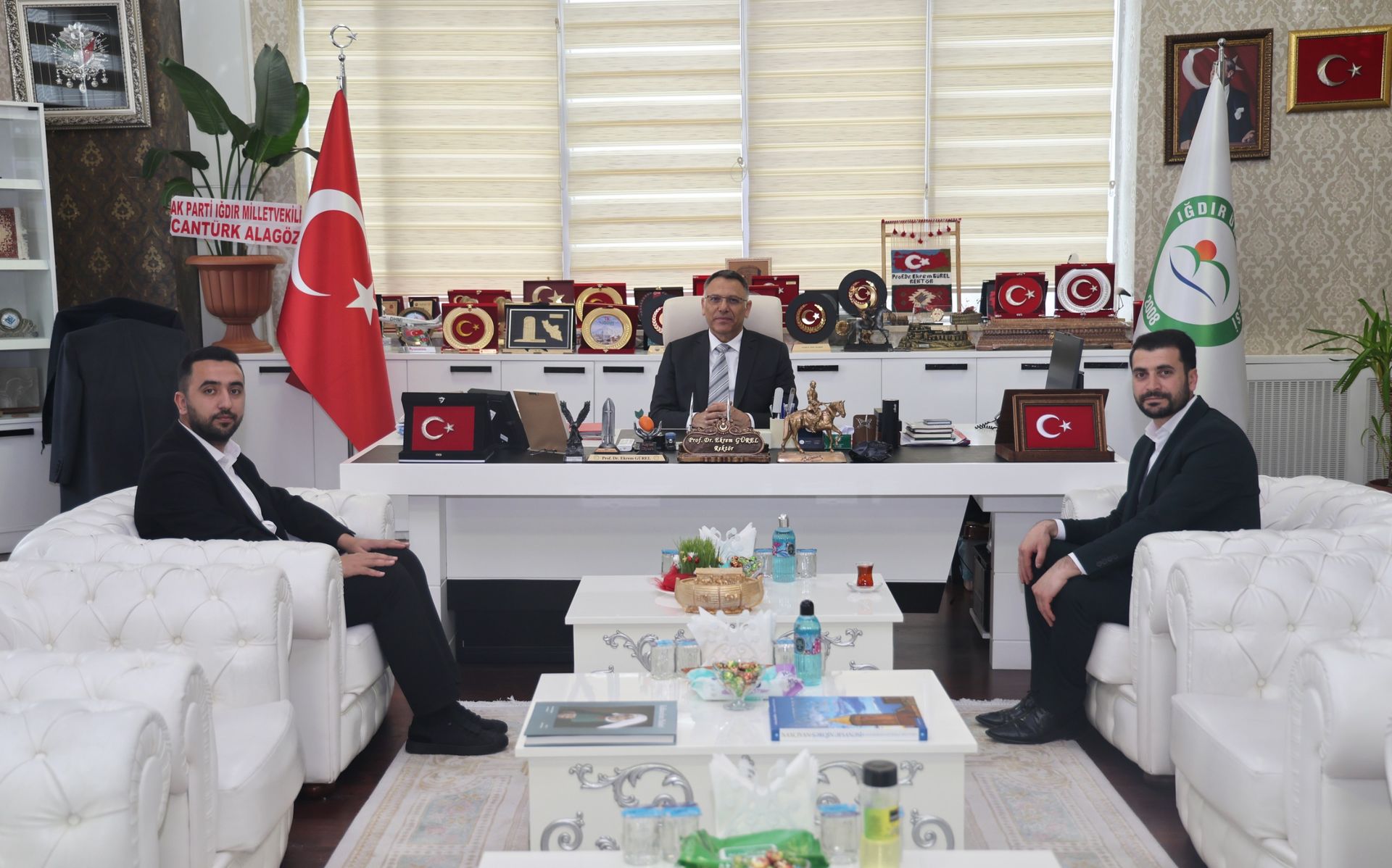 Rektörümüz Prof. Dr. Ekrem Gürel, Üniversitemiz Kampüs Camii görevlileri Muhammed Çalış ve İsmet Güzel’i makamında kabul etti.