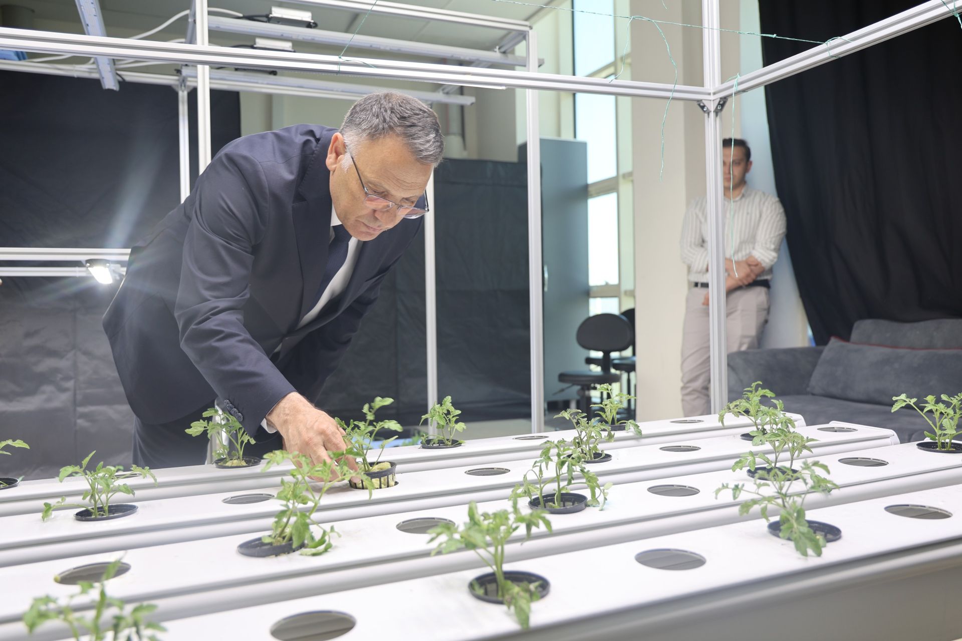 Ziyaret kapsamında ünitenin teknik altyapısı, yürütülen araştırma projeleri ve elde edilen ilk sonuçlara ilişkin yetkililerden detaylı bilgi alan Rektör Gürel; topraksız tarım teknolojilerinin hem bilimsel hem de uygulamalı açıdan sağladığı olanaklara dikkat çekti.
