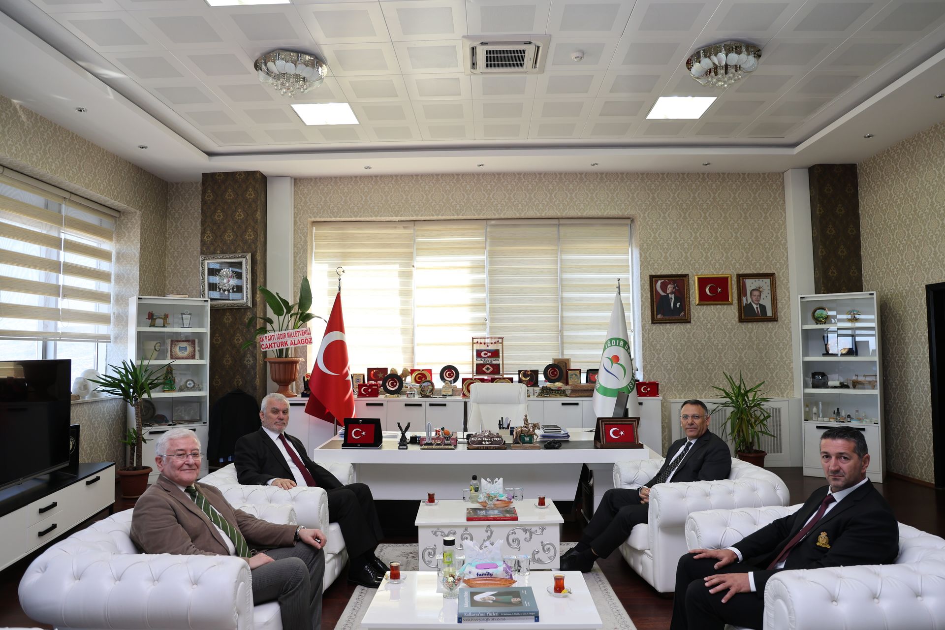 Tez-Koop-İş Sendikası Genel Başkanı Haydar Özdemiroğlu ile Van Şube Başkanı Müslüm Karaboğa, Üniversitemiz Rektörü Prof. Dr. Ekrem Gürel’i makamında ziyaret etti.