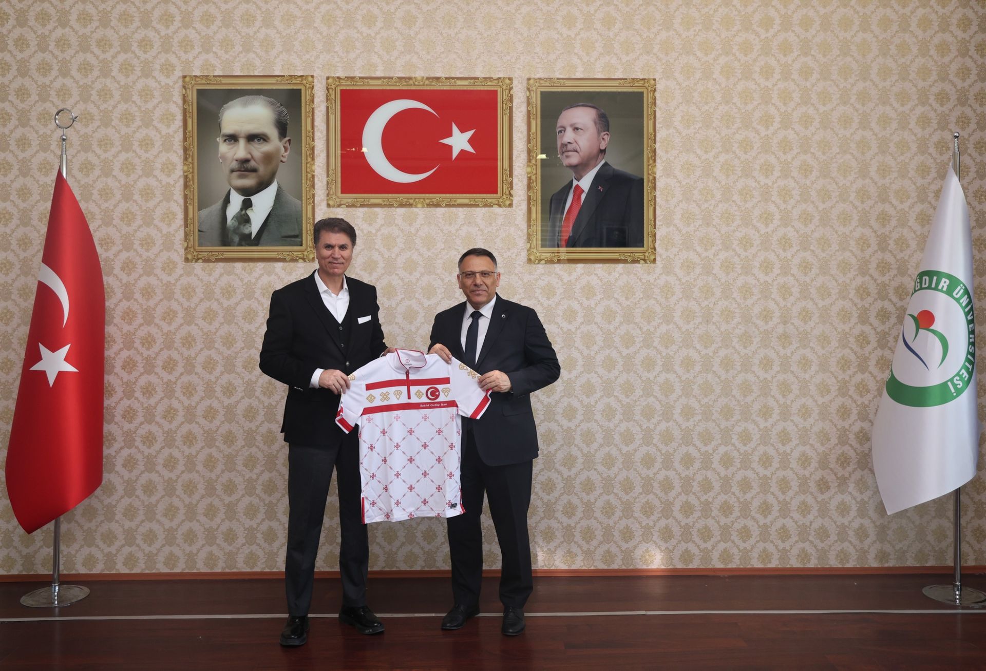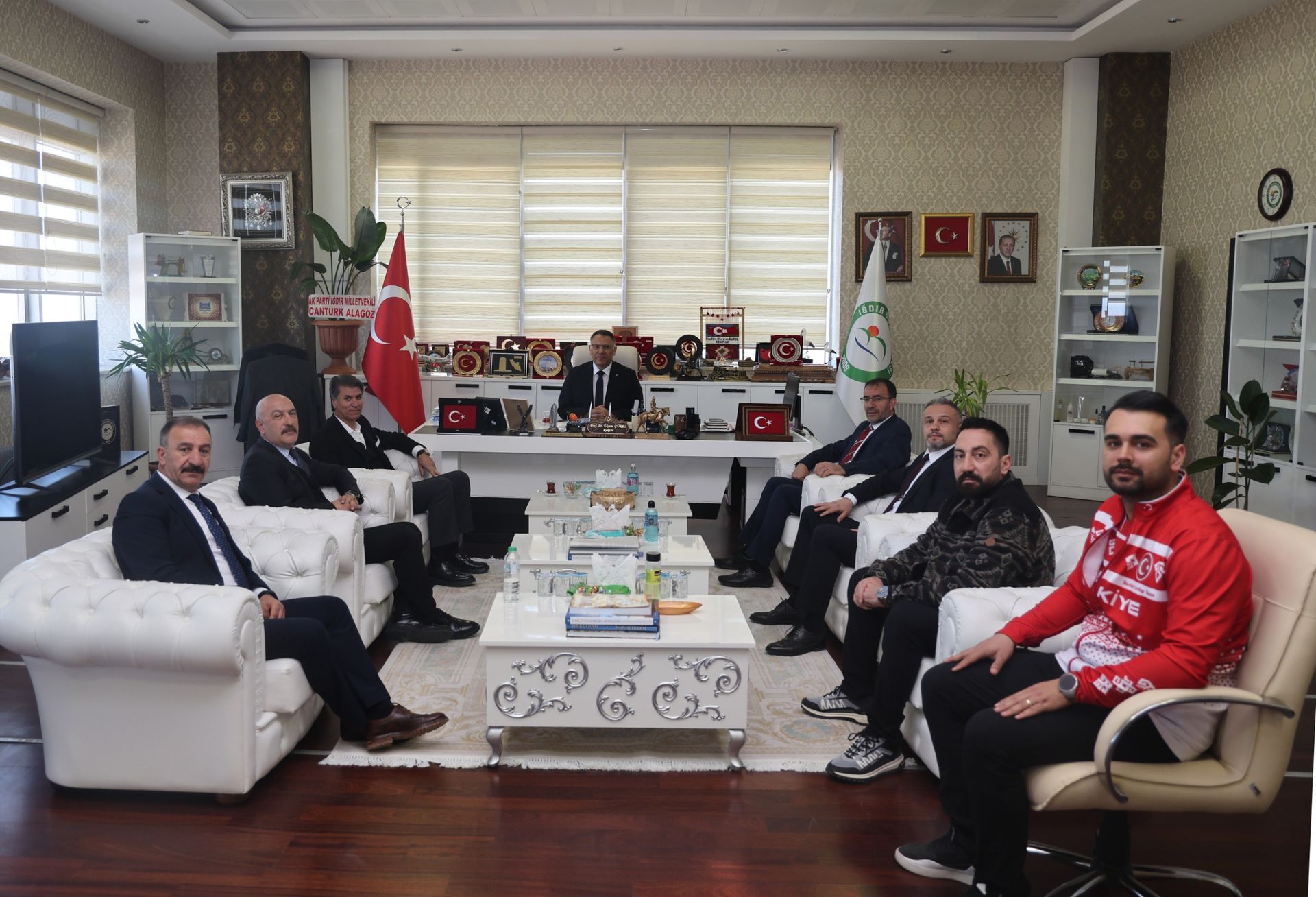 Türkiye Curling Federasyonu Başkanı Prof. Dr. Kenan Şebin ve beraberindeki heyet, Rektörümüz Prof. Dr. Ekrem Gürel'i makamında ziyaret etti.